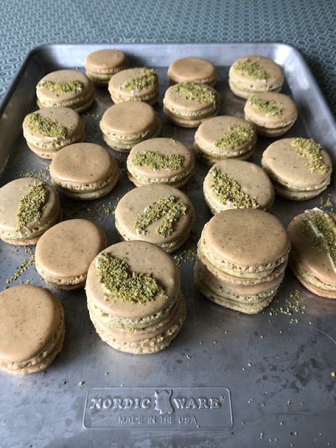 The second time I made them, they tasted great! They were pistachio and I must have made like 50 cookies and they were gone in two days! They tasted perfect but they looked like sandwich cookies, not macarons. Each time I made the cookies, I tried a different recipe and paid more attention to the instructions. It's definitely a recipe you want to carefully follow and read all the notes to. I still don't follow the recipe to a T but I had to do it a few times to nail it. Obviously. Lol. At this point, I feel comfortable making them so I can move on to cute designs and flavours in the future. And arriving here is the exciting part!